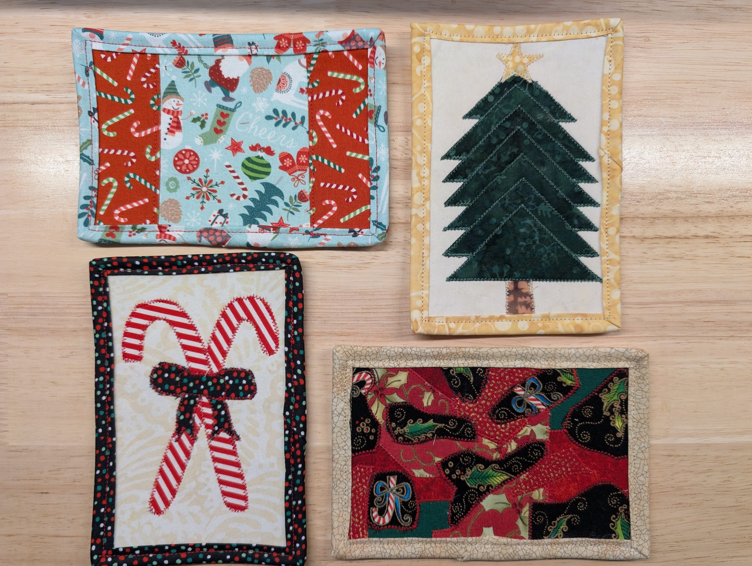 Set of four (4) Christmas quilted fabric postcards.