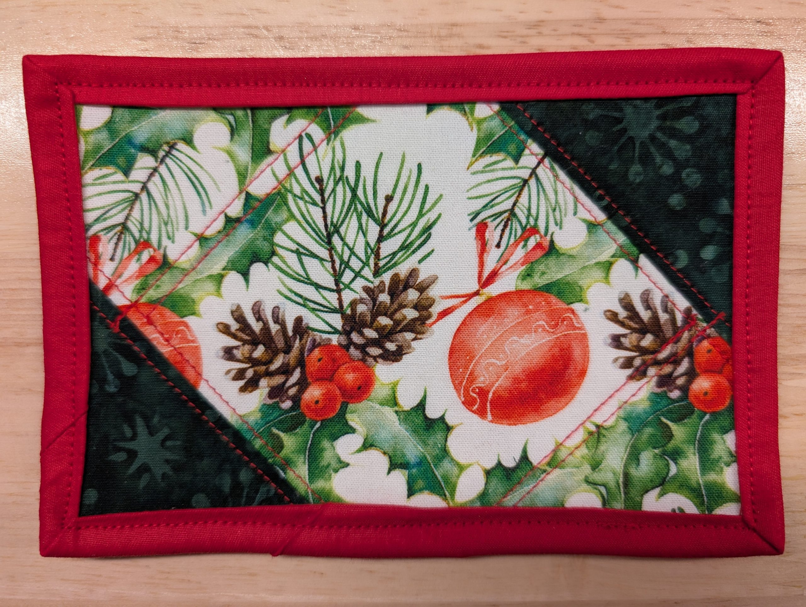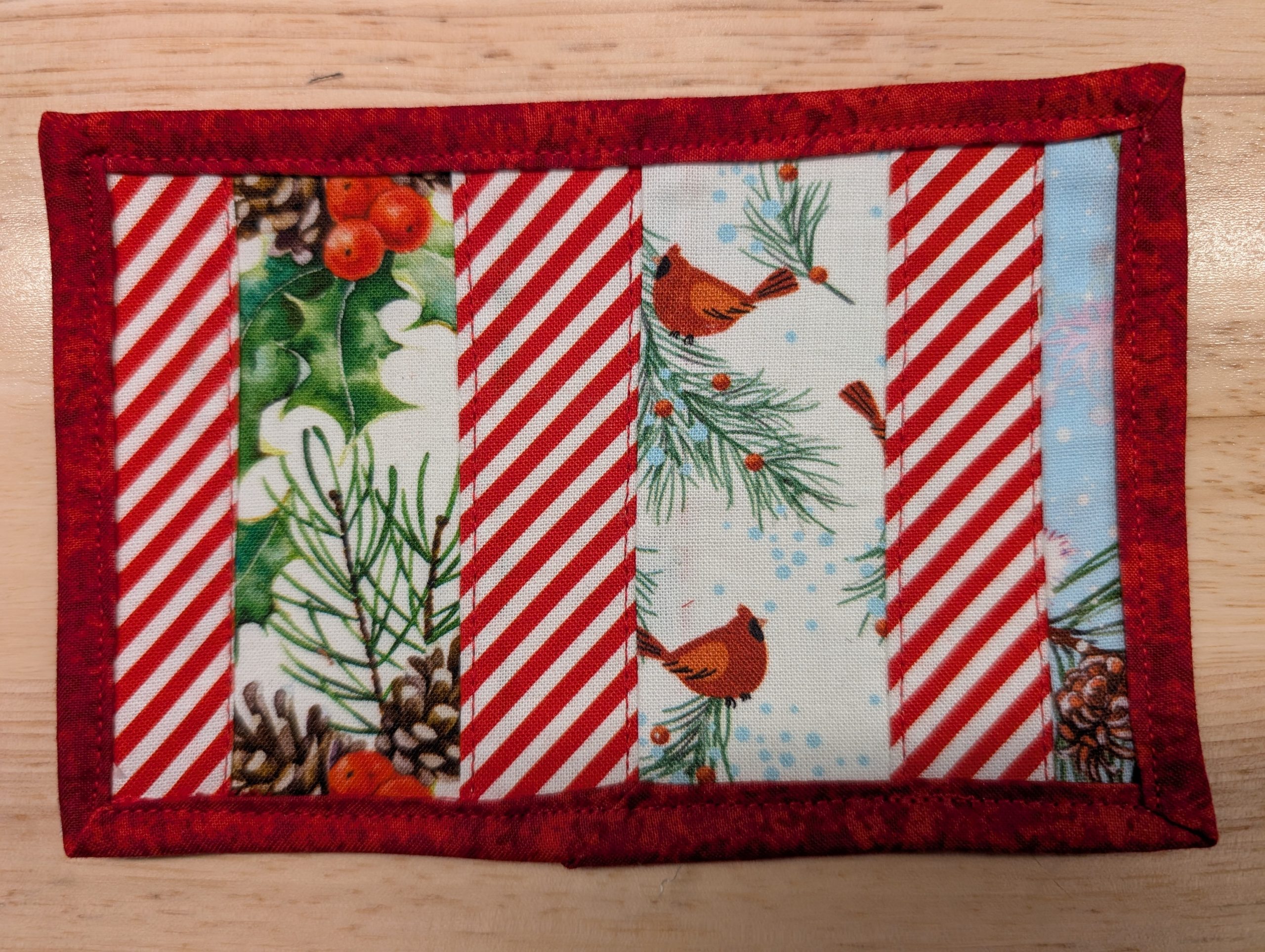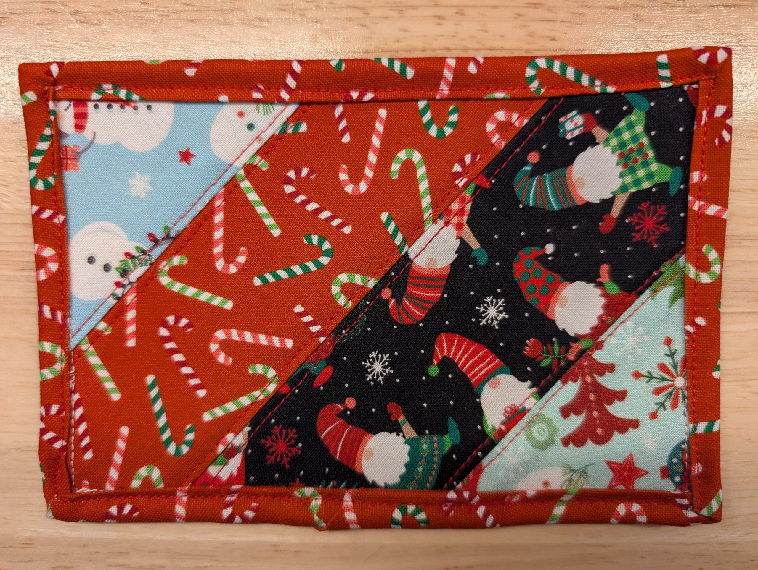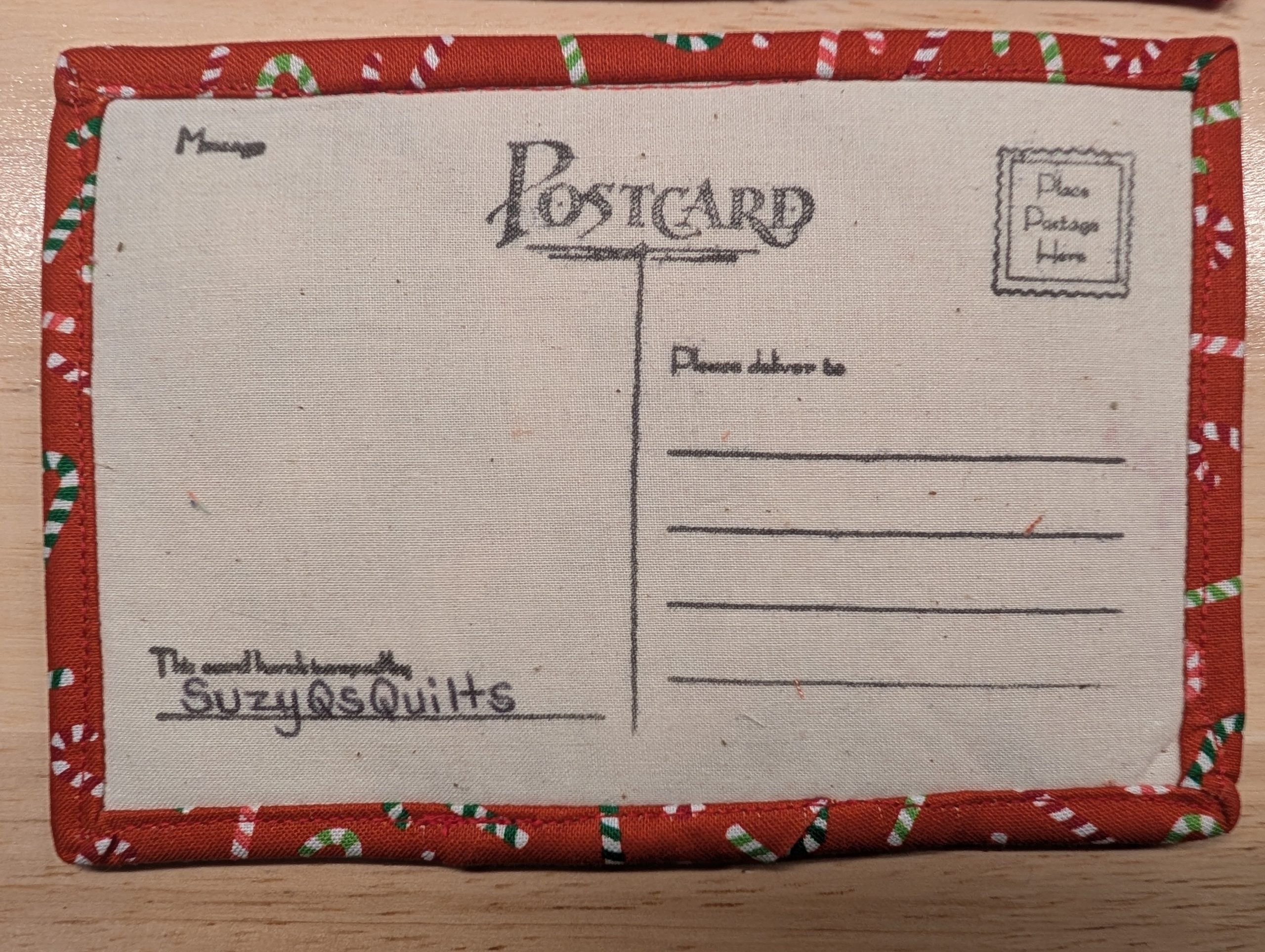 Set of four (4) Holiday themed quilted fabric postcards.